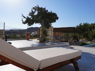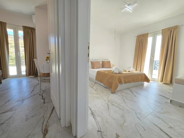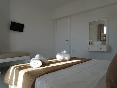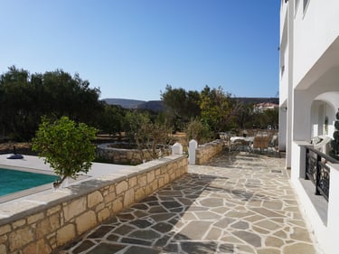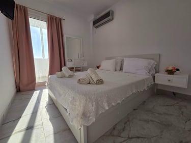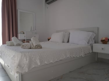 For exploring the island’s beautiful beaches and hidden spots, a car is recommended. Pigadia town center and port are about a 5-minute drive away, and Karpathos Airport can be reached within approximately 20–30 minutes by car.