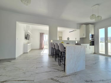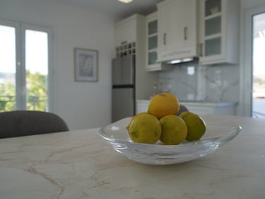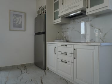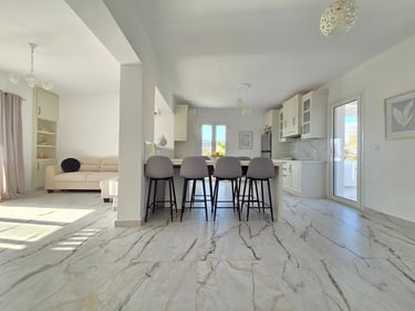 The apartment is located slightly outside the center of Pigadia, offering a peaceful setting while remaining close to the main beach, supermarkets, restaurants, and the harbor promenade. The walk to the center takes approximately 15–20 minutes, allowing easy access to town while enjoying a quieter environment.