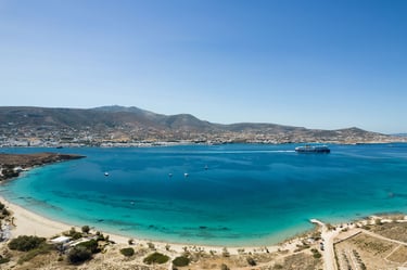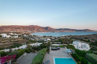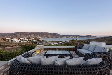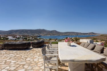 Villa ILIABLUE is a charming Cycladic home offering a unique and magical panoramic view over the port of Parikia and the Aegean Sea. This spacious villa can accommodate up to 8 guests, providing a perfect blend of traditional Greek architecture and modern comfort. Located just 3.5 km from the cosmopolitan center of Parikia, it serves as an ideal retreat for those seeking peace and spectacular sunsets.