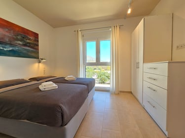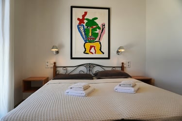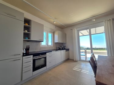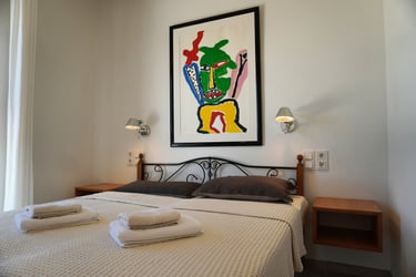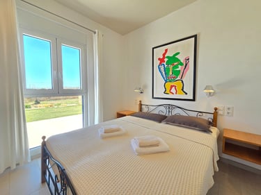The location is a paradise for windsurfers, with both Meltemi Windsurfing and ION Club Windsurfing stations a short drive away. Despite the relaxed setting, you are well-connected to everything you need.