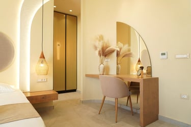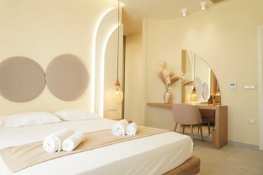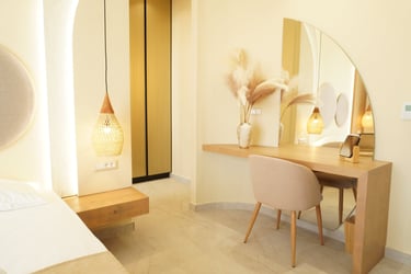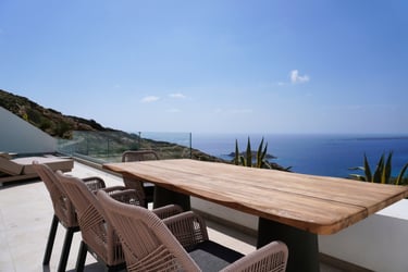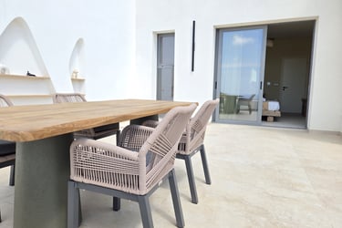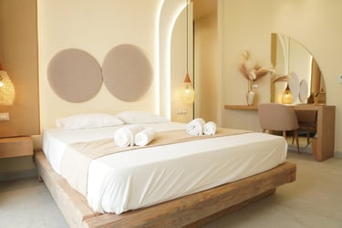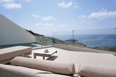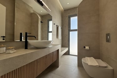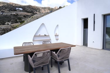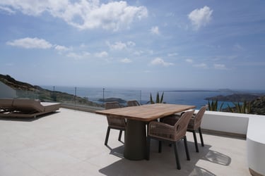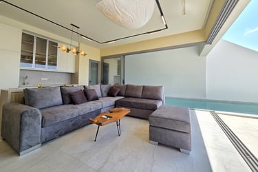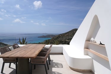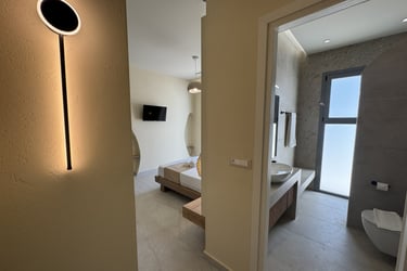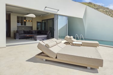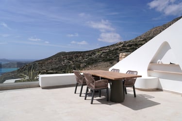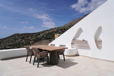 These brand-new, architect-designed villas in Lakki offer a serene and luxurious stay on Karpathos, designed to harmonize with the natural landscape. Partially built underground, they blend privacy with effortless comfort, creating a seamless connection between indoor and outdoor living. The villas’ Japandi-inspired interiors combine Scandinavian minimalism with warm Japanese elements, offering a calm and elegant atmosphere.